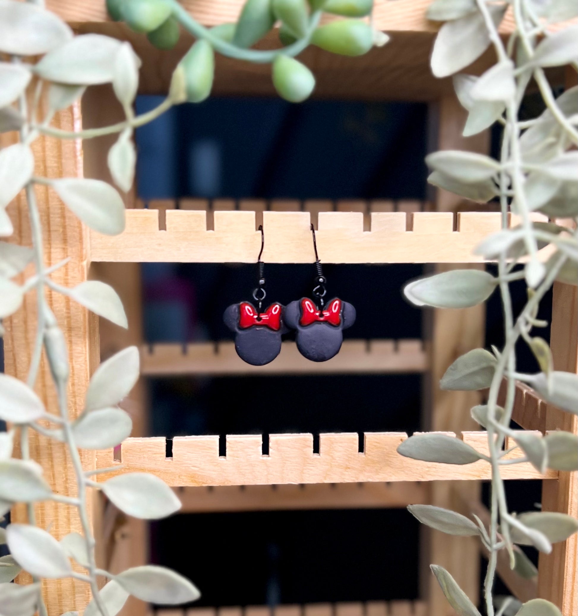 These Classic Minnie earrings capture the iconic look of everyone's favorite mouse! Handmade with polymer clay, they are lightweight and hypoallergenic so you can wear them all day without any discomfort. Plus, the lead-free dangle metals are perfect to show off your timeless style! A must-have for any Disney fan!