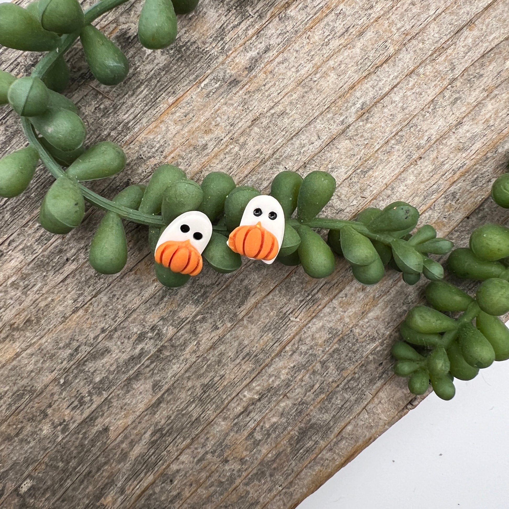 These pumpkin-lovin' ghosts will thrill your ears! These Ghost Pumpkin Studs are handmade from polymer clay and feature lead and nickel-free metals - so they're as comfy as they are cute. Treat yourself to a haunted-house adventure with these spook-tacular earrings!