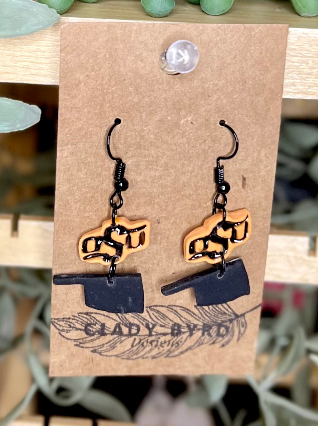 Show your Pokes pride with these unique OSU dangle earrings. Stylishly crafted from polymer clay and with hypoallergenic, lead and nickel free metals, they're ideal for any OSU fan! 🖤🧡☝🏻☝🏽☝🏿