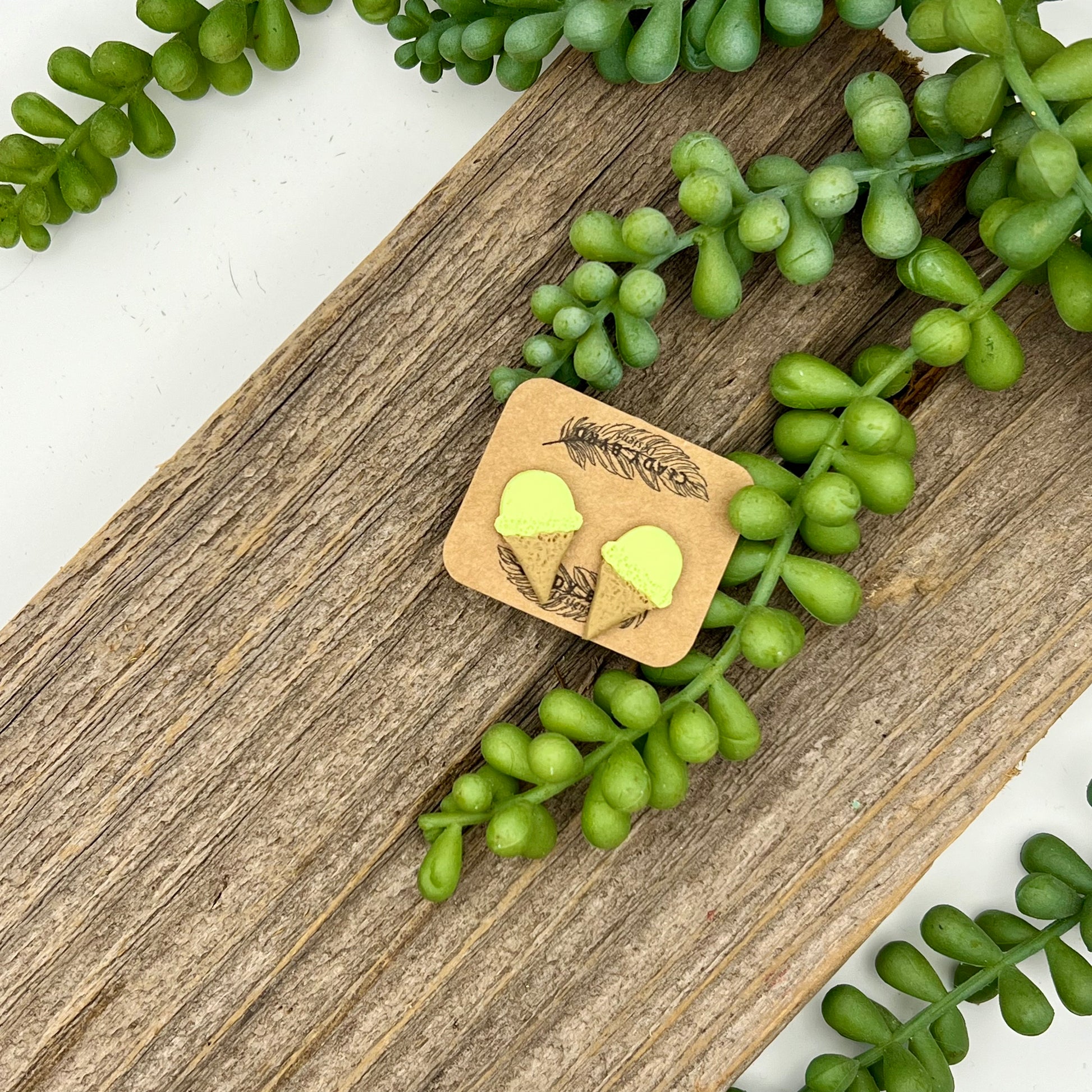 Smother any outfit in deliciousness with these Pistachio Ice Cream Cone earrings. Each cone is handmade with lightweight polymer clay, and connected to hypoallergenic lead-free metals for a sweet treat that won’t trigger any allergies! (Unlike real ice cream...)