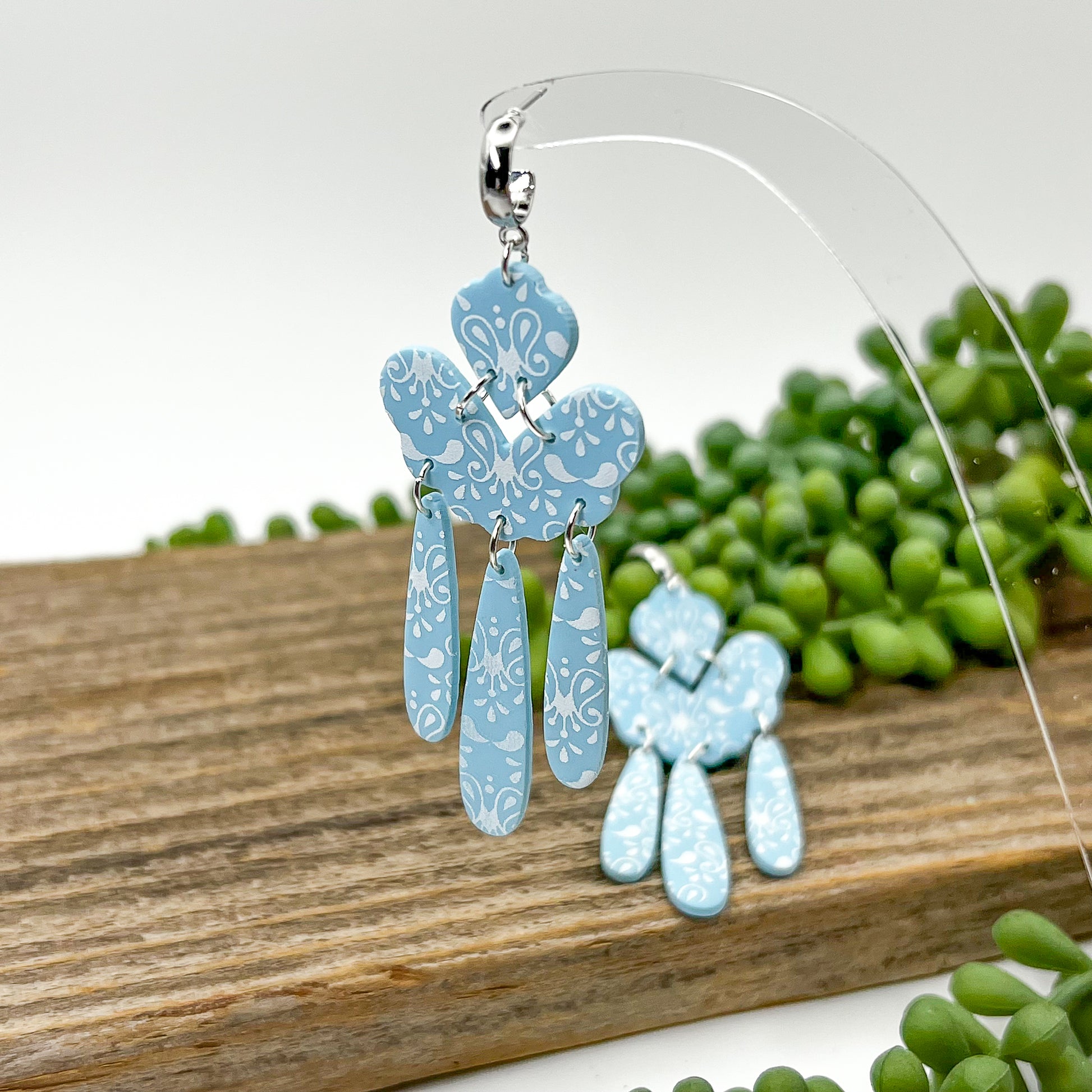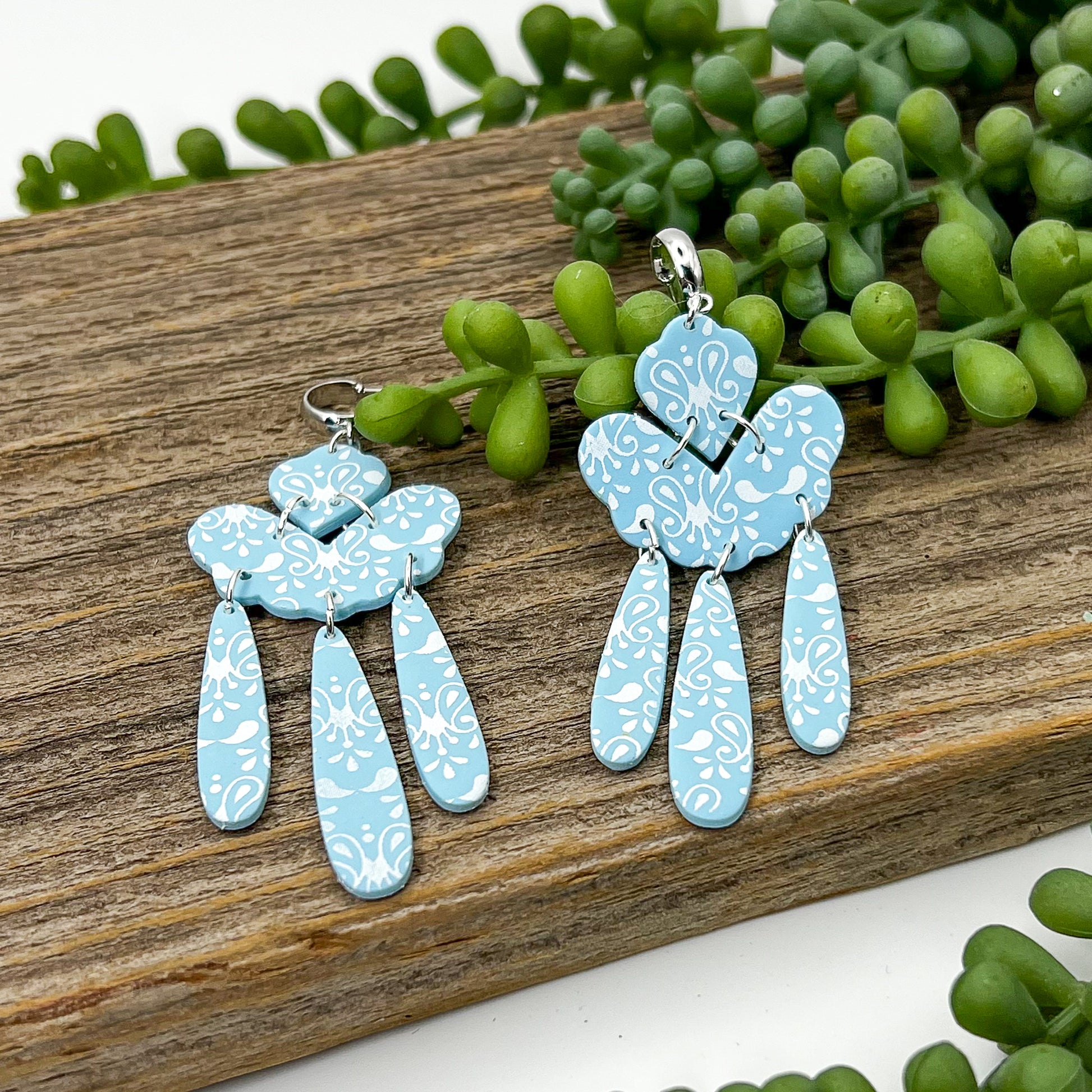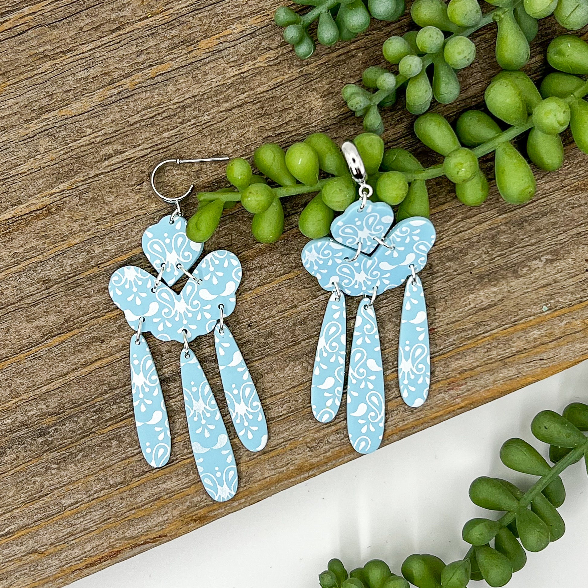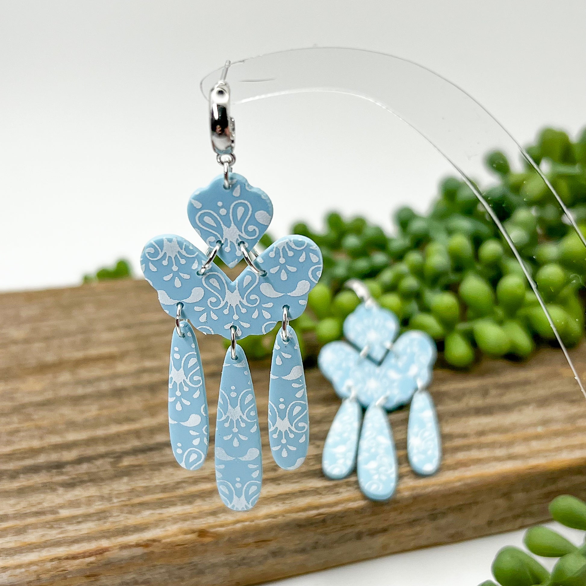 Experience simple elegance with The Clyvedons! These silver huggie dangles are handcrafted from polymer clay and feature delicate white details. Perfect for adding a touch of beauty and charm to any outfit.