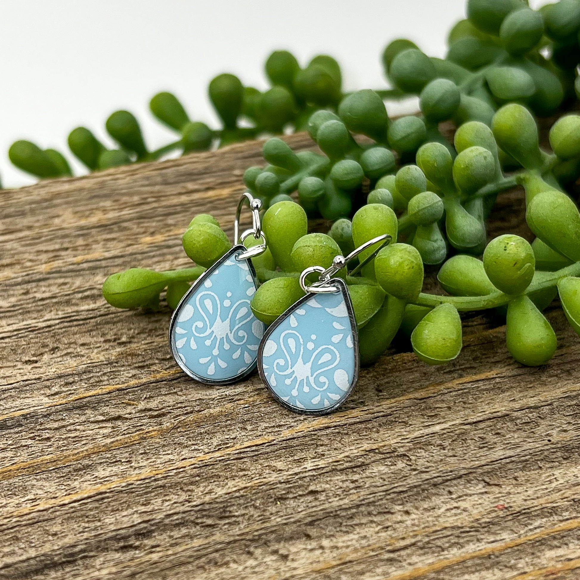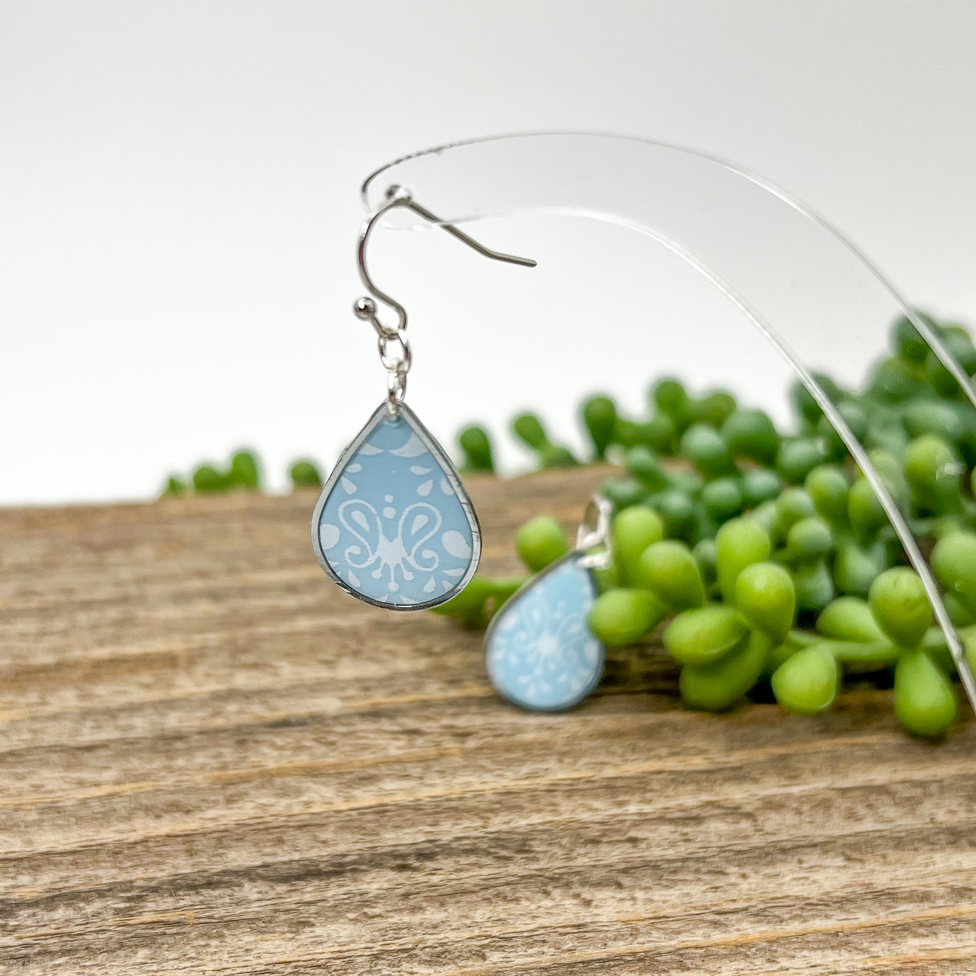 Introducing The Francescas - the adorable, lightweight earrings made from light blue polymer clay with delicate white details. Its tear drop shape is both unique and stylish. Plus, the french hook sensitive ear metals ensure comfort and style all day long. So, go ahead and make a statement with The Francescas (earrings that are simply "clay"-mazing!).
